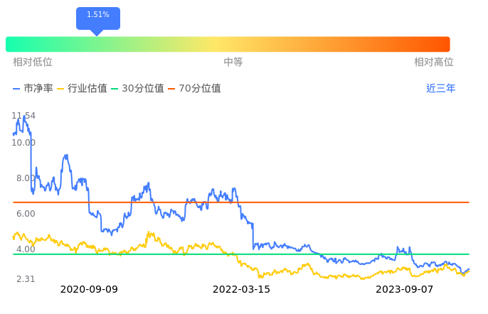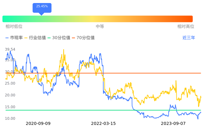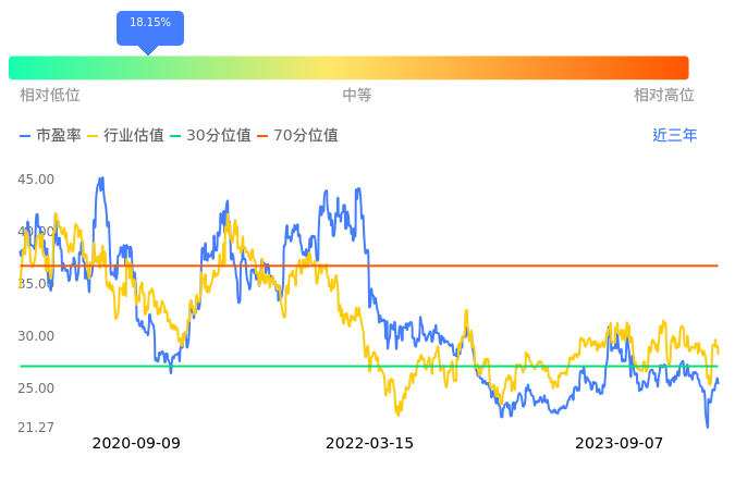 2023年09月08日,深南电路上涨0.99%收于68.18,今日成交金额1.12亿元。下文将从市盈率PETTM、市净率PB、市现率3个角度去分析公司估值情况。