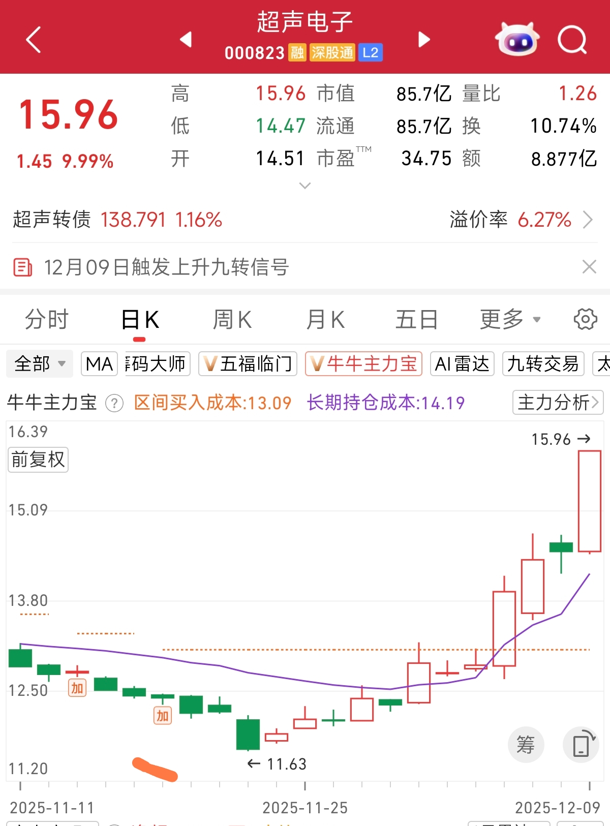 当前市场快速切换,变化太快,选股时一定要参考主力的动向。想知道主力在干啥?“主力宝”(点击解锁)帮你盯住主力资金动向。“进”是买入,“加”是加仓,比如超声电子在11月18日发出主力加仓信号,盯紧主力动向,投资更安心。新朋友首次订阅,立减50,首月仅需18元,点击查看详情>>