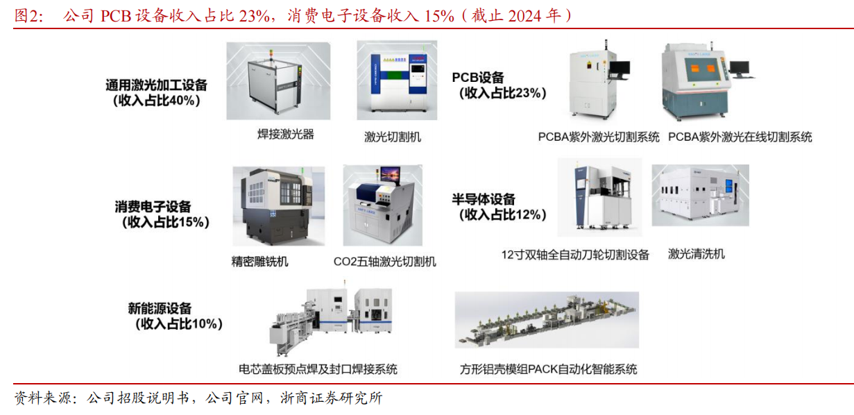 公司客户覆盖全面,深度绑定行业头部企业。公司是是国内少数能够提供二氧化碳激光钻孔机和IC载板高精微针测试机替代进口产品的企业2024年,公司客户涵盖Prismark2024年全球PCB企业百强排行榜80%的企业、2024年CPCA综合百强排行榜全部企业及国内上千家中小PCB企业,与鹏鼎控股、景旺电子、胜宏科技、深南电路、东山精密等行业头部客户达成合作。