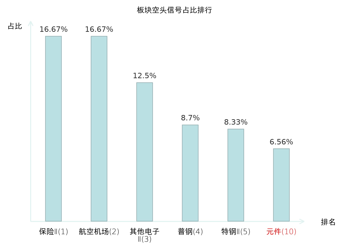 全市场所有行业板块中主力空头信号占比排名中,保险Ⅱ板块位居第一。基础建设板块名次提升最快,较昨日上升108位。