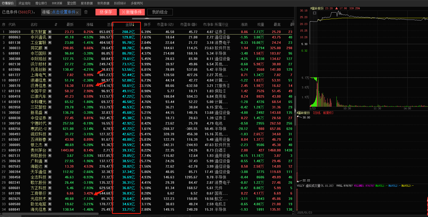 大成交方向上,昨日说过的看大科技的趋势方向,今日东方财富成交额突破200亿,市场这里由于大成交极限位置无法继续往上,因此整个市场的趋势走势完全无法因为金额的变化导致市场整体资金从多翻到空,大成交亏钱效应还是比较严重的