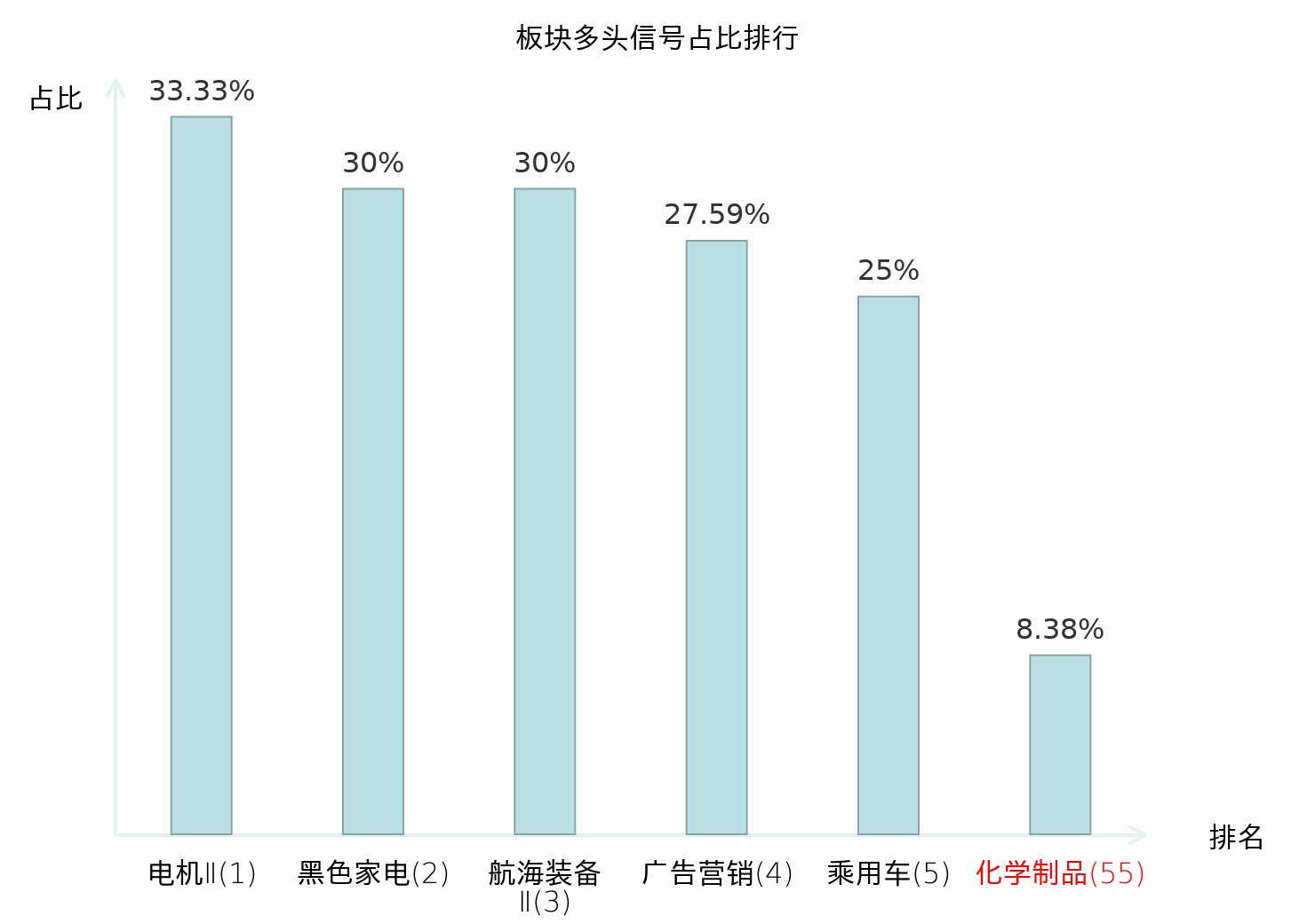 全市场所有行业板块中主力多头信号占比排名中,电机Ⅱ板块位居第一。乘用车板块名次提升最快,较昨日上升114位。