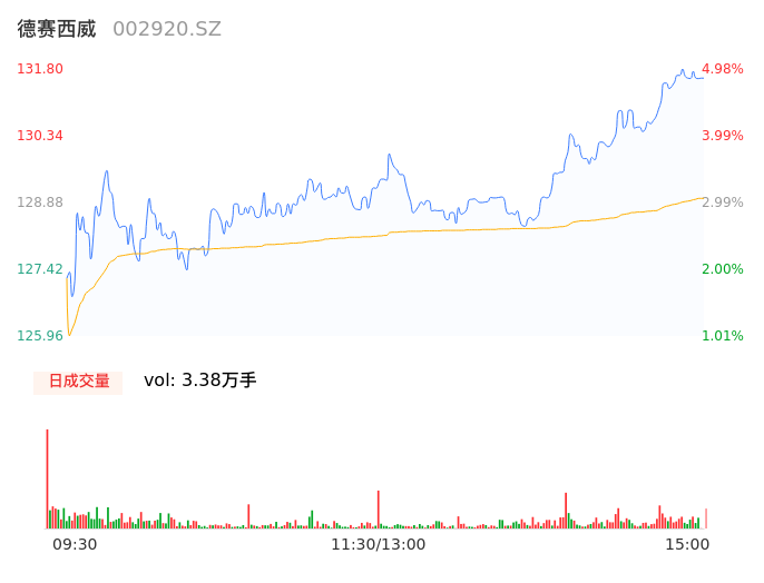 04月17日,德赛西威收报131.60,股价涨幅4.82%,成交金额4.36亿元,换手率0.61%。
