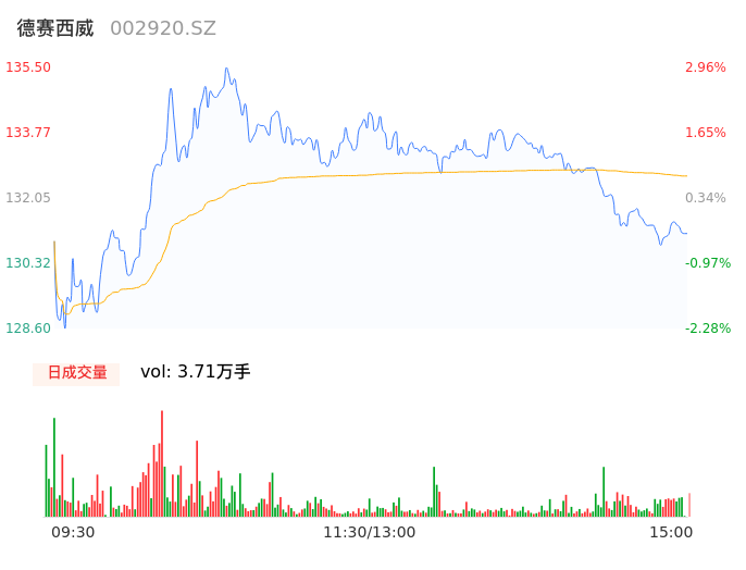 04月18日,德赛西威收报131.12,股价涨幅-0.36%,成交金额4.93亿元,换手率0.67%。