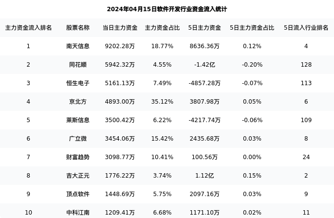 从主力资金流向来看,软件开发行业今日主力资金流入65.59亿元,在所有申万二级行业中排名:55/131。