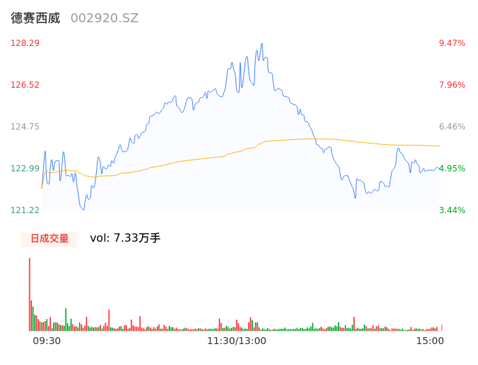 04月29日,德赛西威收报123.06,股价涨幅5.01%,成交金额9.08亿元,换手率1.33%。