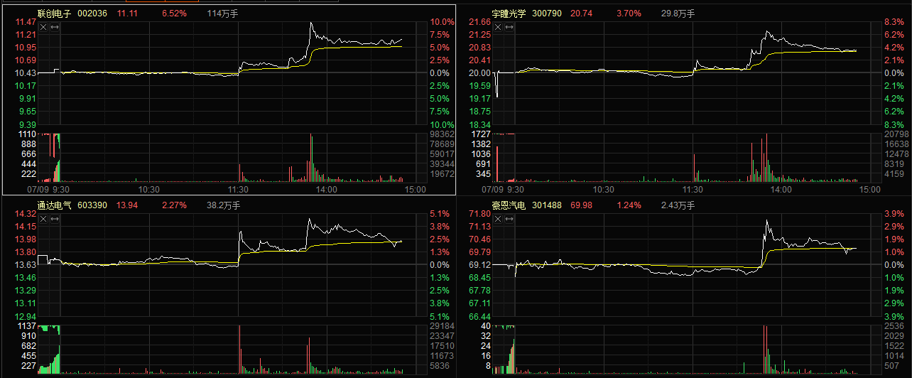 今日午后比亚迪智驾概念异动,联创电子直线拉升一度逼近涨停,宇瞳光学、通达电气、亚太股份、豪恩汽电、德赛西威等跟涨。