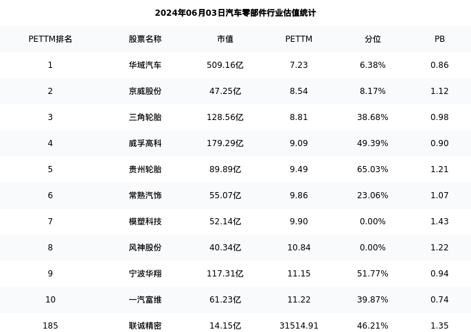 联诚精密最新报告期数据为一季度,下表汇总了汽车零部件行业内市值靠前的公司一季度主要经营数据