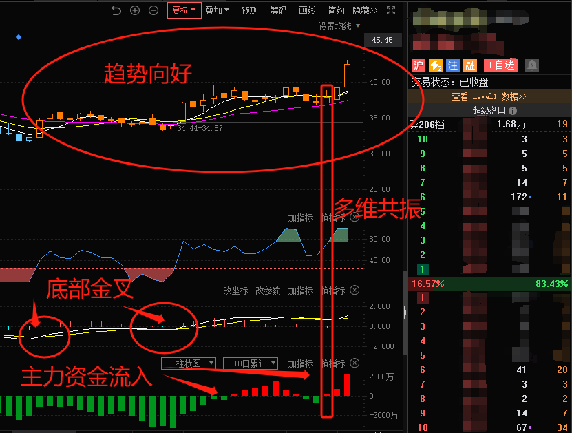 趋势向好,底部金叉,主力资金流入!