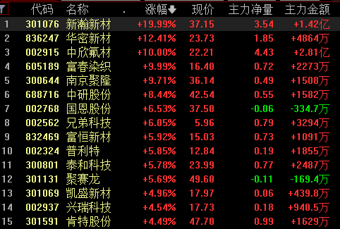 1板:新泉股份、顺威股份、爱 仕 达、诺力股份、中欣氟材、联诚精密、先锋电子、新瀚新材、正裕工业、华 之 杰、富春染织、朗特智能、上纬新材