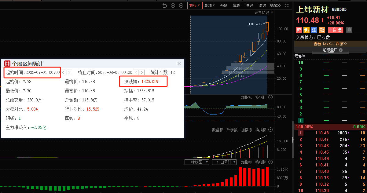 不止新高,直接又是20CM涨停,市场中的资金可以说赌性拉满!