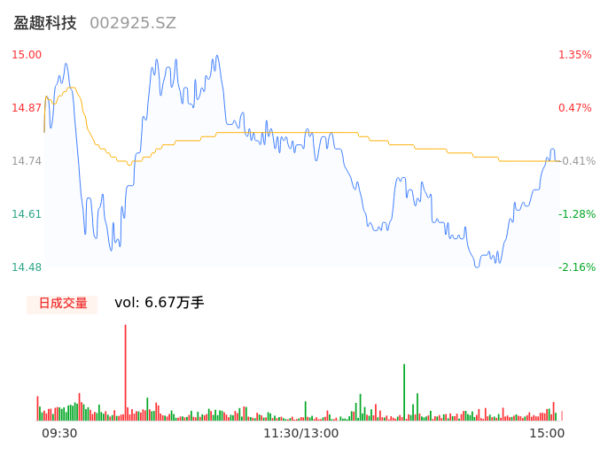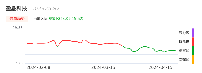 04月15日,盈趣科技收报14.74,股价涨幅-0.41%,成交金额9833.99万元,换手率0.91%。