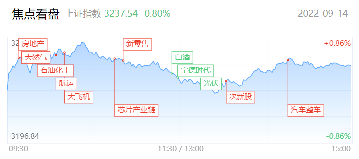 总体上个股跌多涨少,两市超3600只个股下跌。沪深两市今日成交额7228亿,较上个交易日缩量485亿,两市成交金额再创阶段新低。板块方面,次新股、燃气、港口、零售等板块涨幅居前,HJT电池、养殖、环氧丙烷、抽水蓄能等板块跌幅居前。