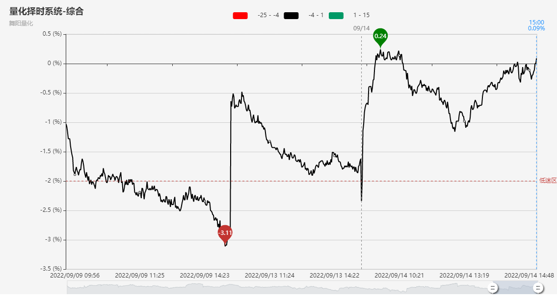 情绪方面,今日市场情绪与指数形成一定的背离,在指数下跌的背景下,短线情绪指标弹升至0轴之上。