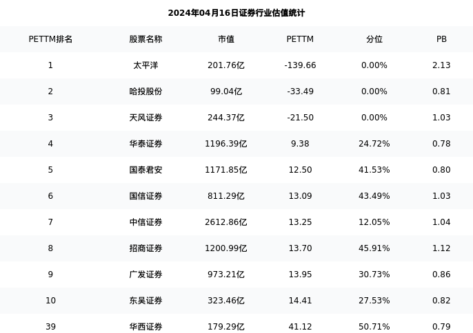 从估值角度看:华西证券最新市盈率PETTM为41.12,在行业内排名36/50,处于50.71分位。