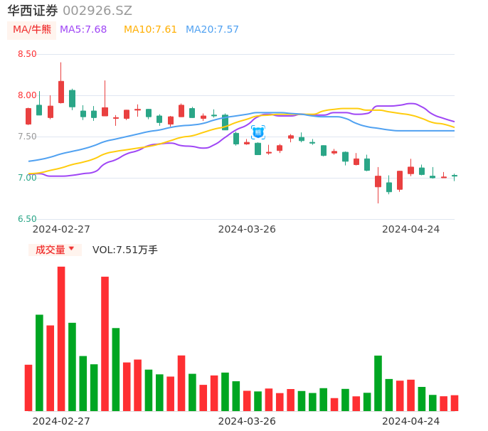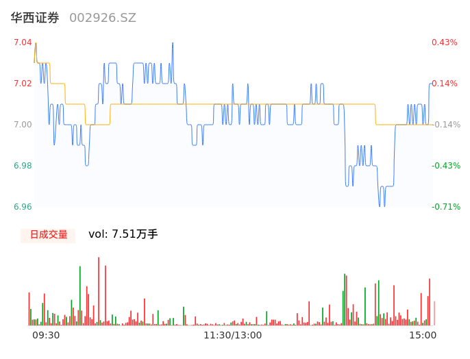 04月24日,华西证券收报7.02,股价涨幅0.14%,成交金额5260.29万元,换手率0.29%。