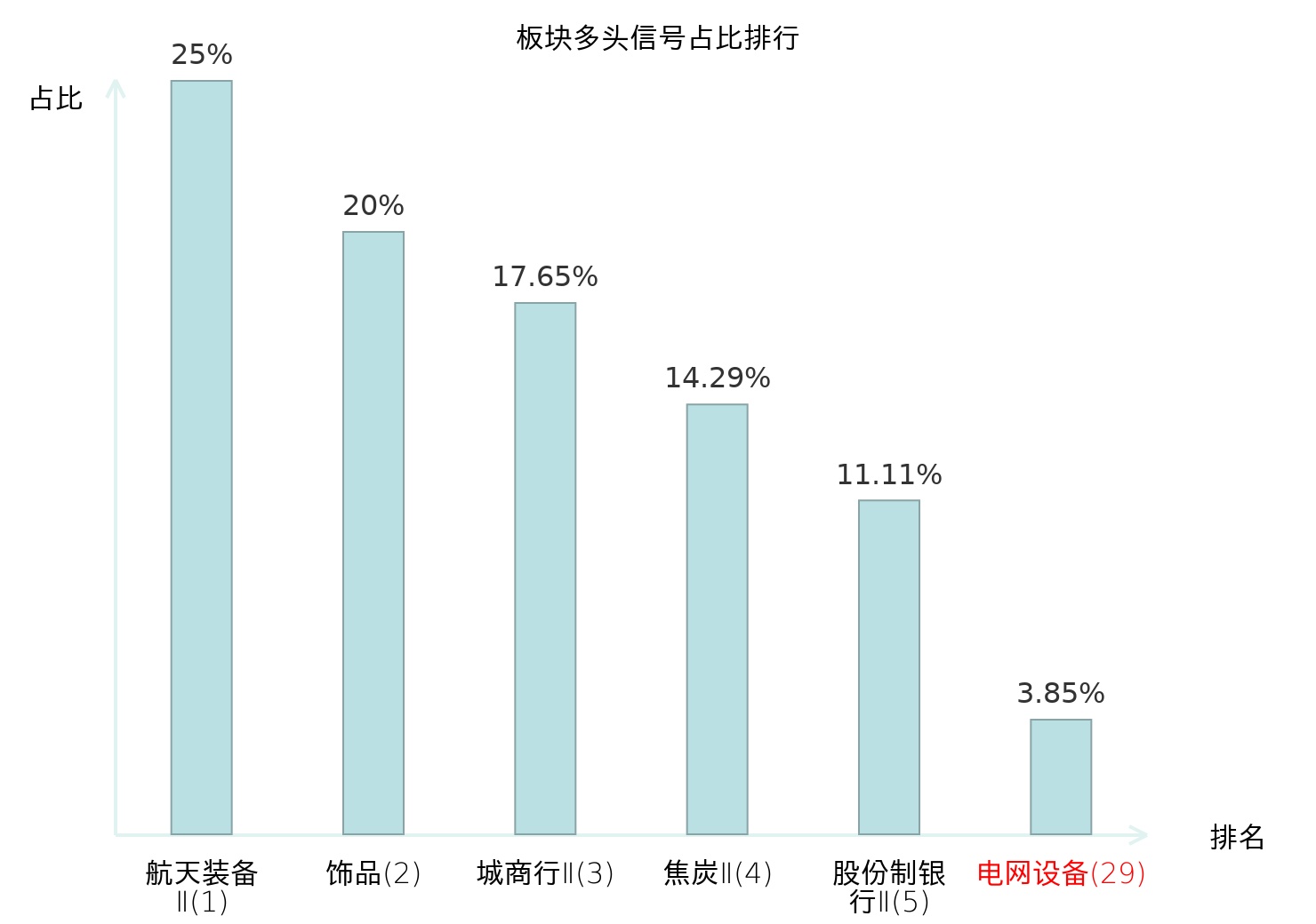 全市场所有行业板块中主力多头信号占比排名中,航天装备Ⅱ板块位居第一。航天装备Ⅱ板块名次提升最快,较昨日上升122位。