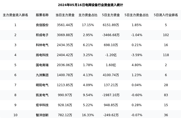从主力资金流向来看,电网设备行业今日主力资金流入45.24亿元,在所有申万二级行业中排名:81/131。