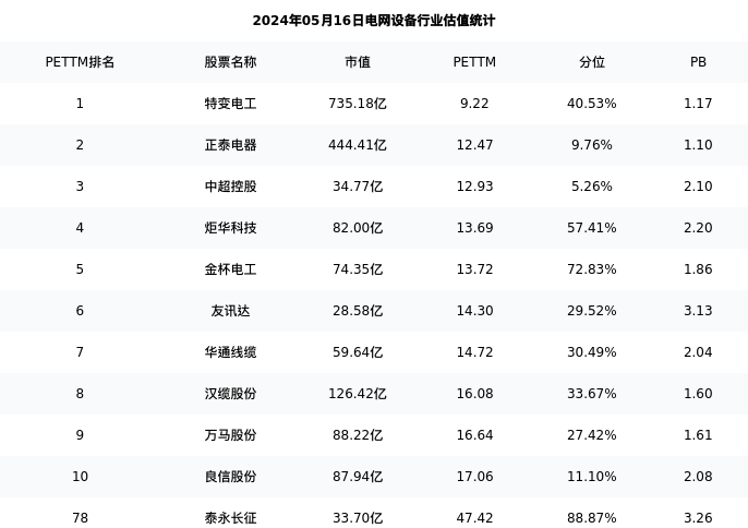 从估值角度看:泰永长征最新市盈率PETTM为47.42,在行业内排名78/121,处于88.87分位。