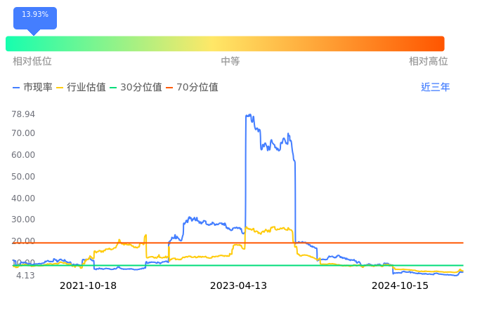 2024年10月15日,华夏航空上涨0.14%收于7.28,今日成交金额1.60亿。下文将从市盈率PETTM、市净率PB、市现率3个角度去分析公司估值情况。