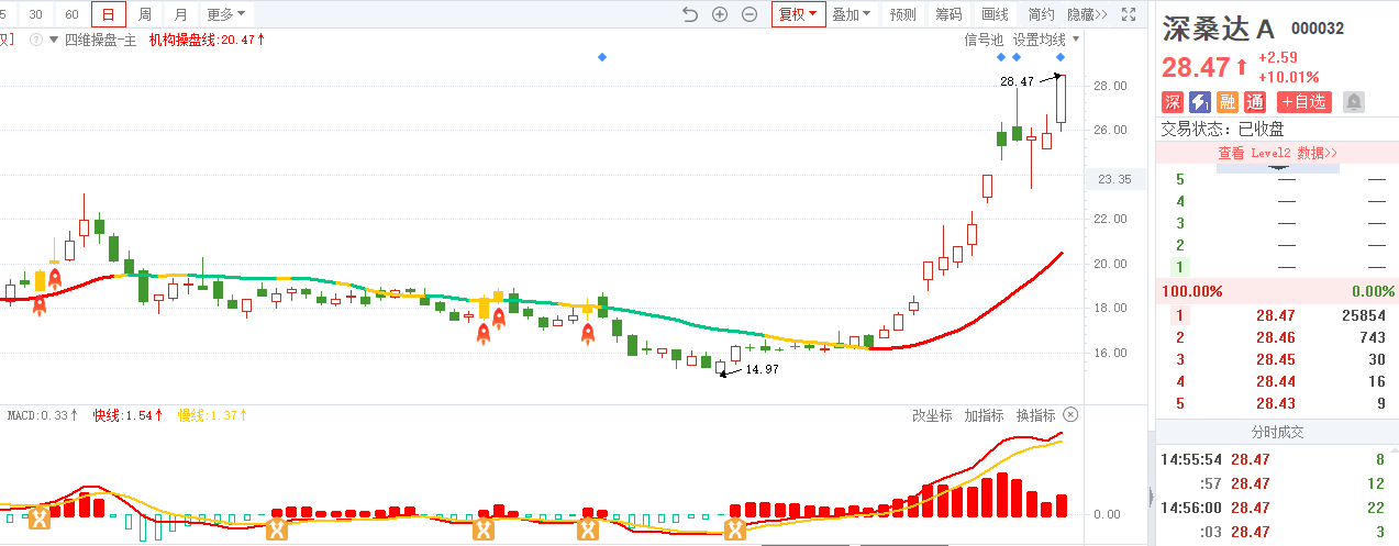 2)深桑达A-四维操盘-近期出现火箭信号且底部量柱由绿转红