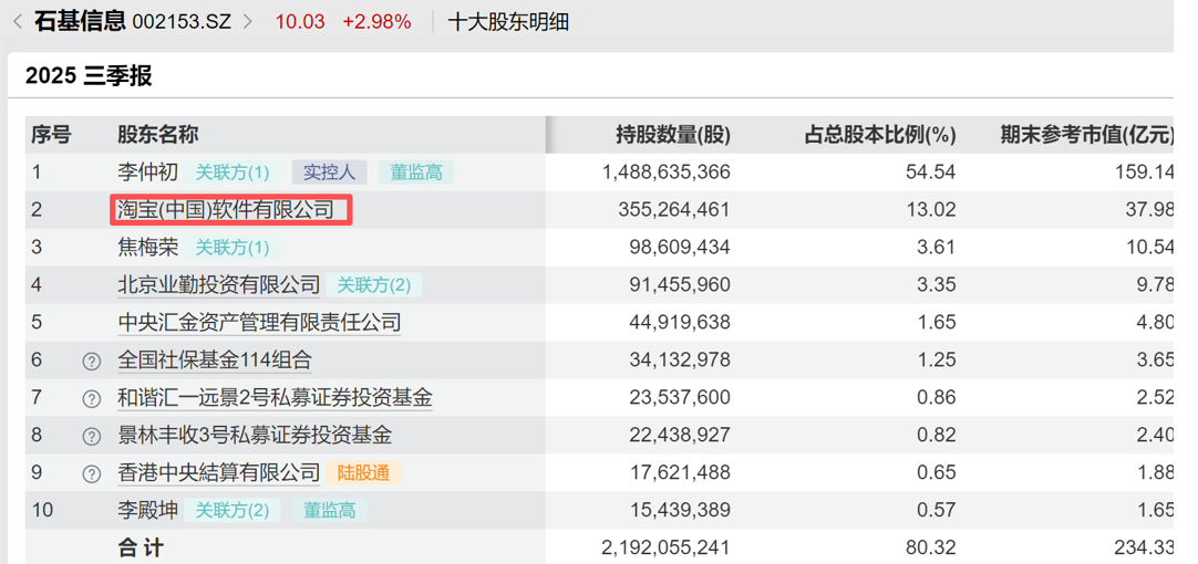 石基信息是阿里投资的酒店&零售IT服务商,而高德是阿里的全资子公司(地图和出行平台)。2014年达成战略合作,实现淘宝旅行与石基酒店信息系统直连,孵化“信用住”等创新产品,累计服务超千万人次。阿里为石基第二大股东,双方在酒店、零售领域深度直连,构建大消费数据生态,高德扫街榜是高德地图于2025年9月推出的AI生活服务榜单,基于用户导航、到店行为数据生成,覆盖餐饮、酒店等业态。其核心逻辑是通过真实行为数据(如导航里程、搜索频次)和芝麻信用体系构建商家信用评价,石基信息可为高德提供酒店、餐饮、零售等消费场景的信息系统服务和数据。