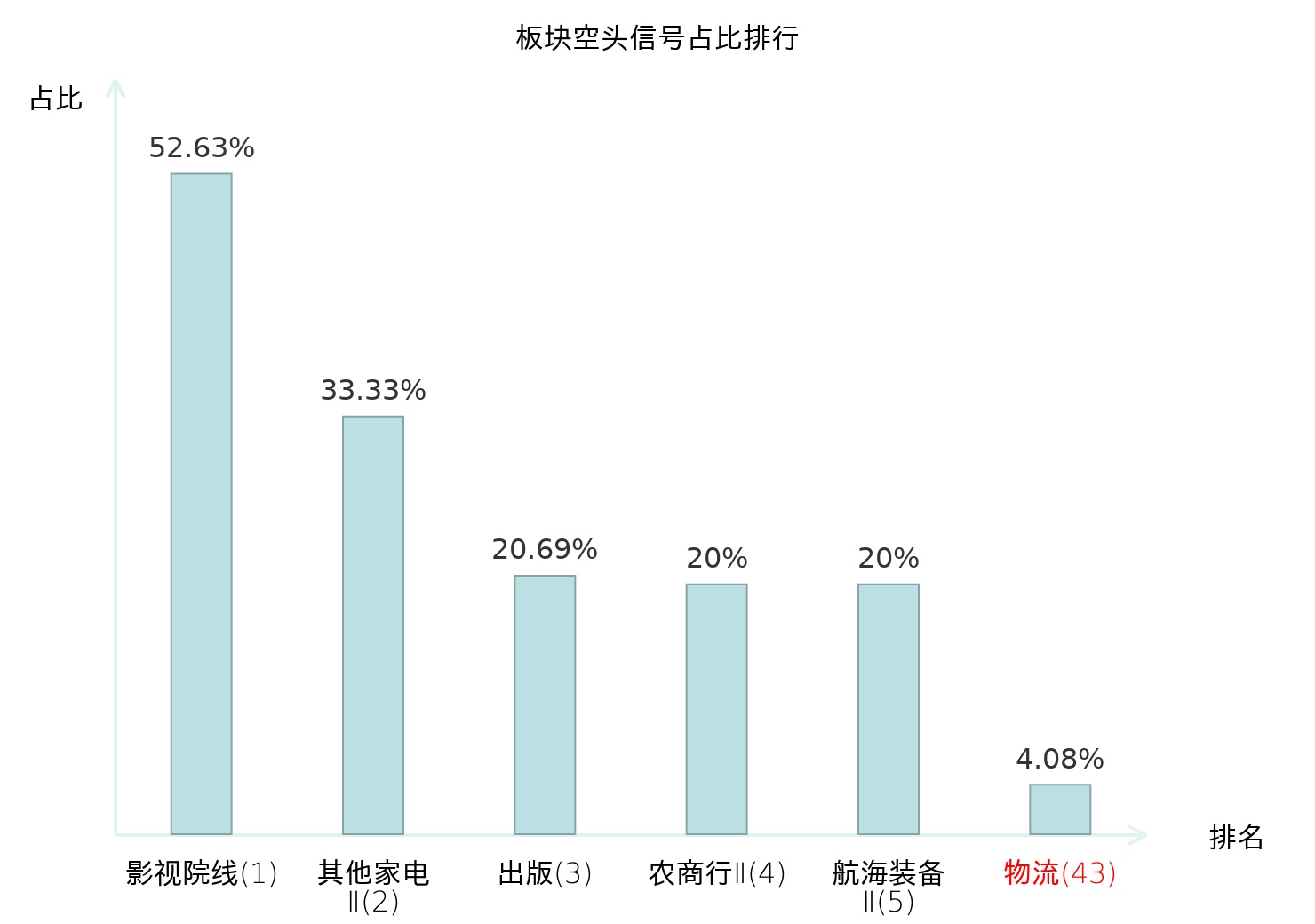 全市场所有行业板块中主力空头信号占比排名中,影视院线板块位居第一。出版板块名次提升最快,较昨日上升115位。