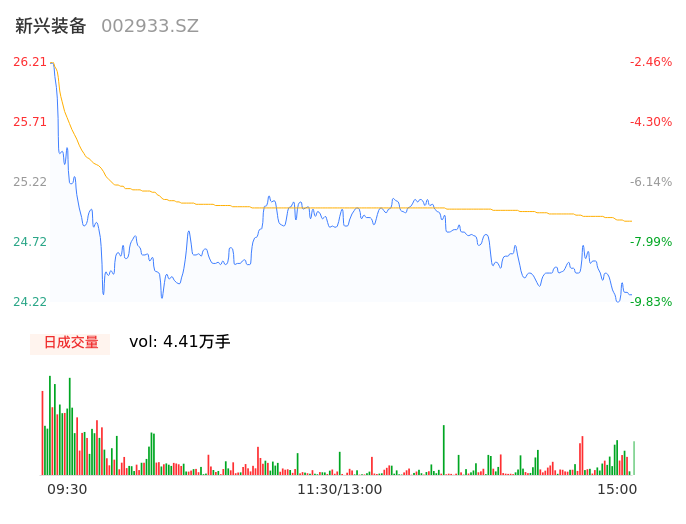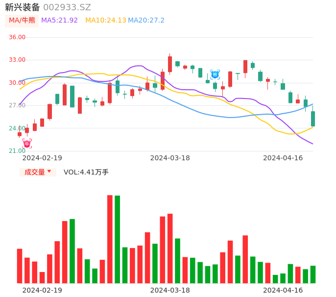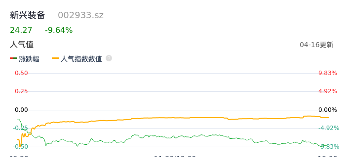 04月16日,新兴装备收报24.27,股价涨幅-9.64%,成交金额1.10亿元,换手率3.87%。