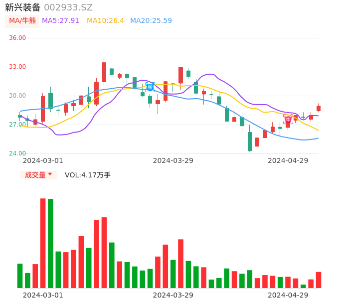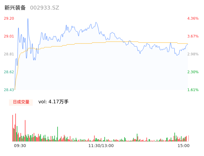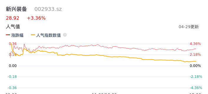 04月29日,新兴装备收报28.92,股价涨幅3.36%,成交金额1.21亿元,换手率3.66%。