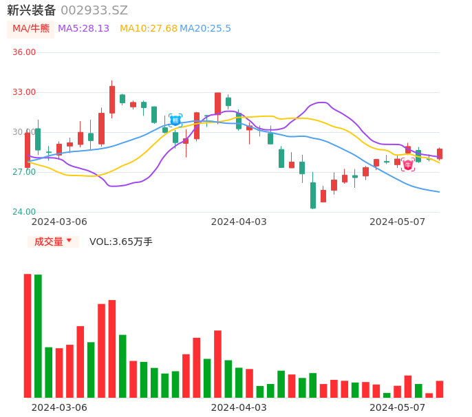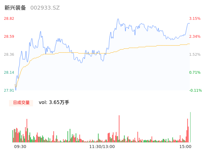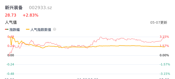 05月07日,新兴装备收报28.73,股价涨幅2.83%,成交金额1.04亿元,换手率3.20%。