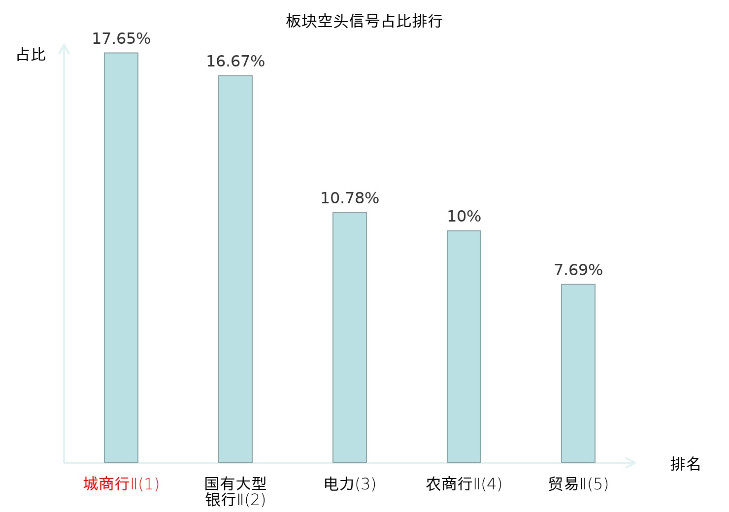 全市场所有行业板块中主力空头信号占比排名中,城商行Ⅱ板块位居第一。化学原料板块名次提升最快,较昨日上升122位。