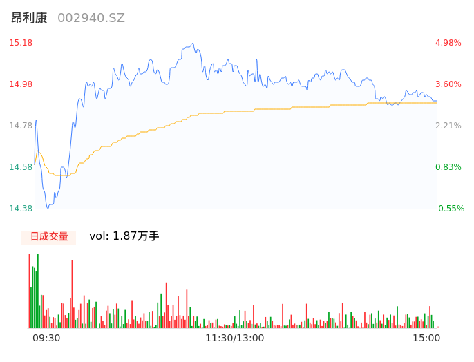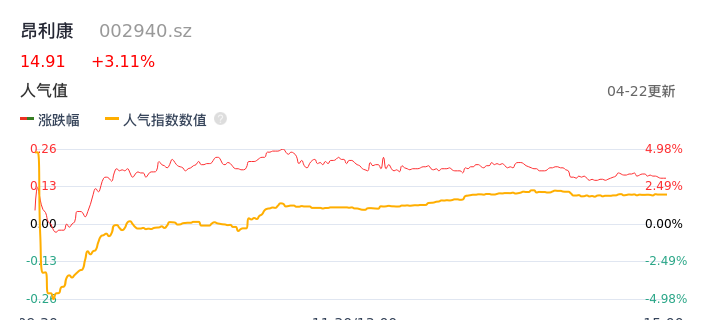 04月22日,昂利康收报14.91,股价涨幅3.11%,成交金额2778.32万元,换手率1.01%。