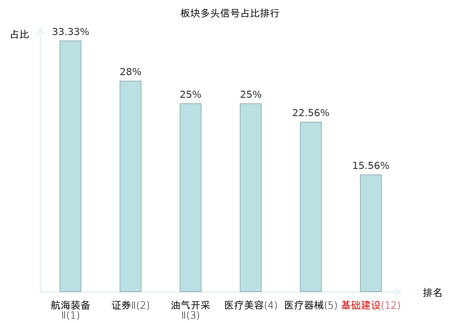 全市场所有行业板块中主力多头信号占比排名中,航海装备Ⅱ板块位居第一。油气开采Ⅱ板块名次提升最快,较昨日上升123位。