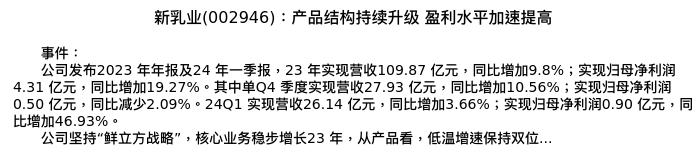 值得注意的是:2024年05月国联证券的刘景瑜分析师,首次发布关于新乳业的研究报告,标题为:新乳业(002946):产品结构持续升级 盈利水平加速提高。