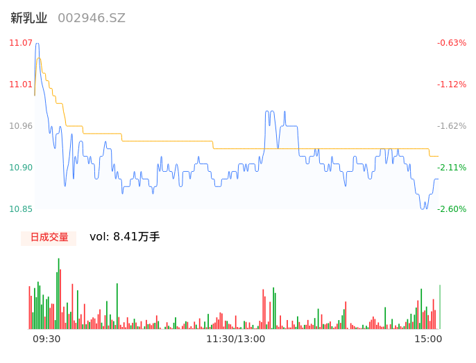 05月15日,新乳业收报10.88,股价涨幅-2.33%,成交金额9184.62万元,换手率0.99%。