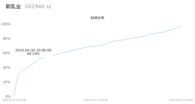 002946新乳业2024年04月30日成交12.74万手,成交金额1.27亿元,相较昨日缩量1.19万手,换手率1.50%,成交清淡。