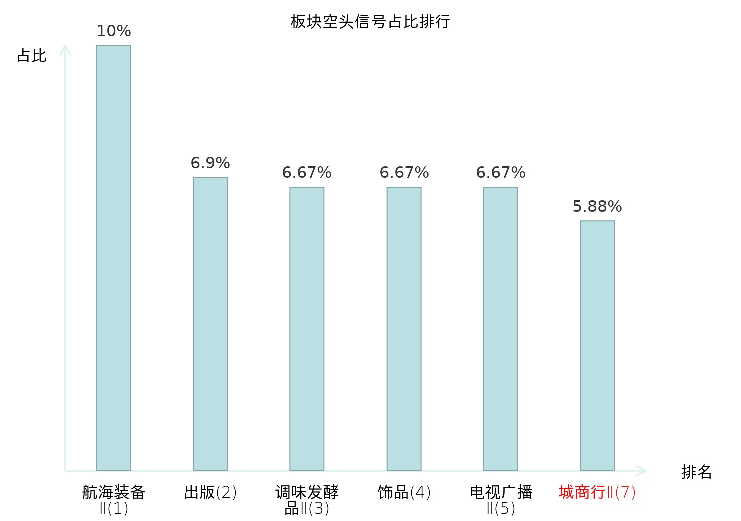 全市场所有行业板块中主力空头信号占比排名中,航海装备Ⅱ板块位居第一。自动化设备板块名次提升最快,较昨日上升102位。