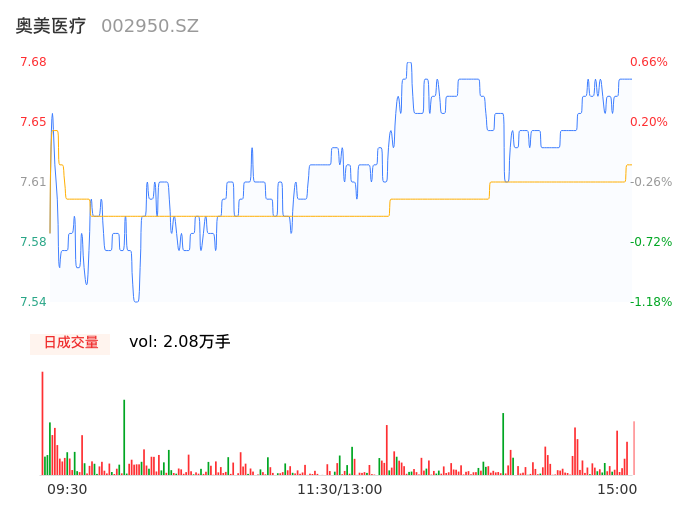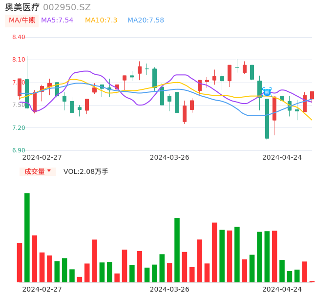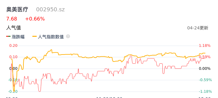 04月24日,奥美医疗收报7.68,股价涨幅0.66%,成交金额1584.50万元,换手率0.46%。