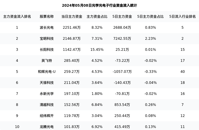 下表为今日行业内流入前10股票的信息