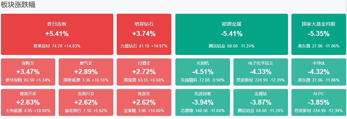板块方面,保险、煤炭、银行、港口航运等板块涨幅居前,半导体、CPO等板块跌幅居前。截至收盘,沪指跌0.62%,深成指跌2.54%,创业板指跌3.99%。