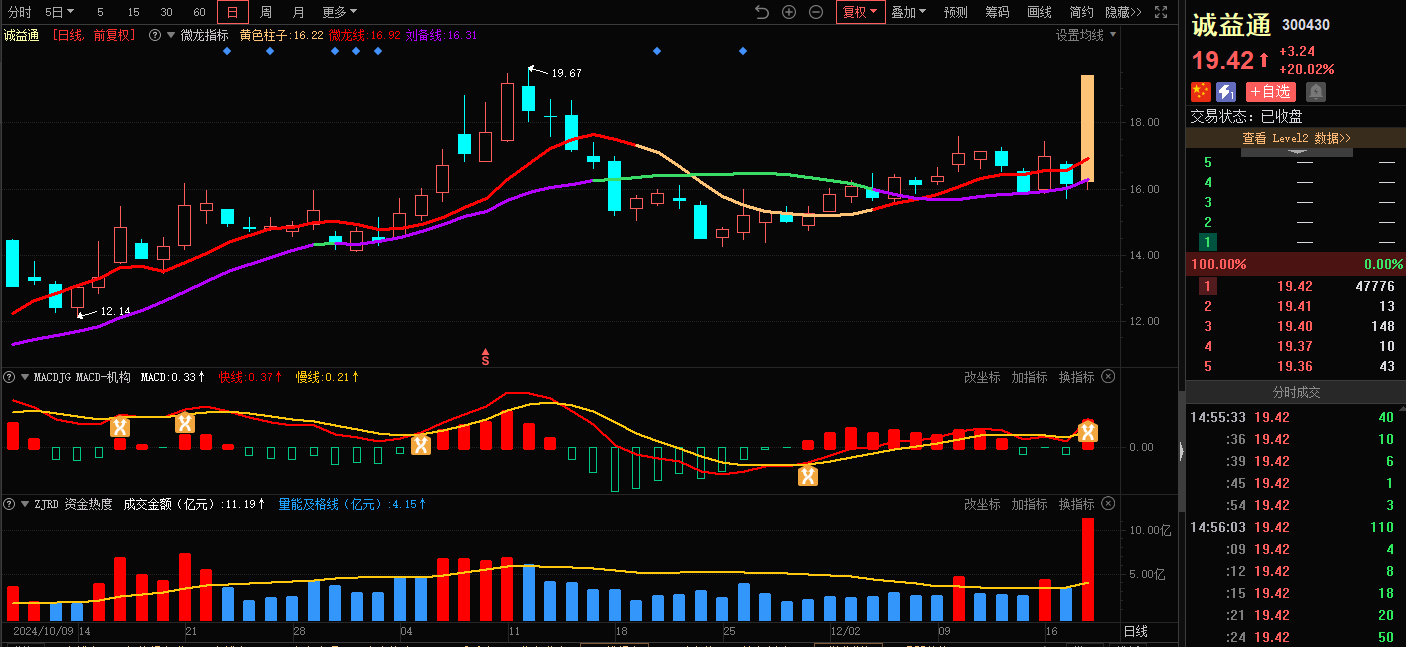 3)参考技术指标:诚益通-微龙指标-出现启动K线信号