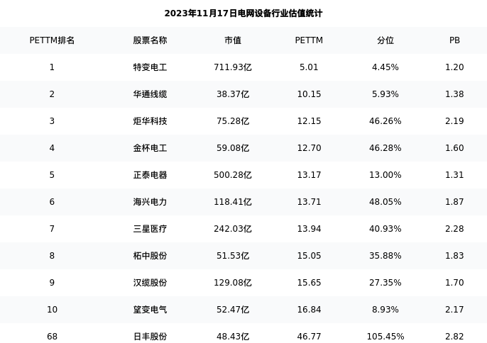 从估值角度看:日丰股份最新市盈率PETTM为46.77,在行业内排名69/121,处于105.45分位。