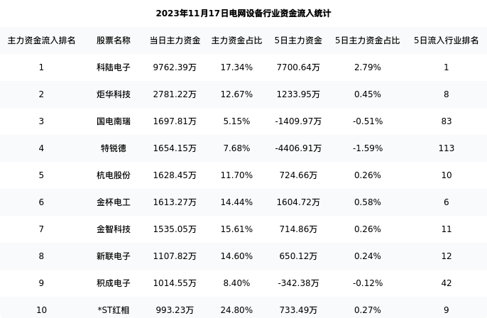 从主力资金流向来看,电网设备行业今日主力资金流入23.08亿元,在所有申万二级行业中排名:123/131。