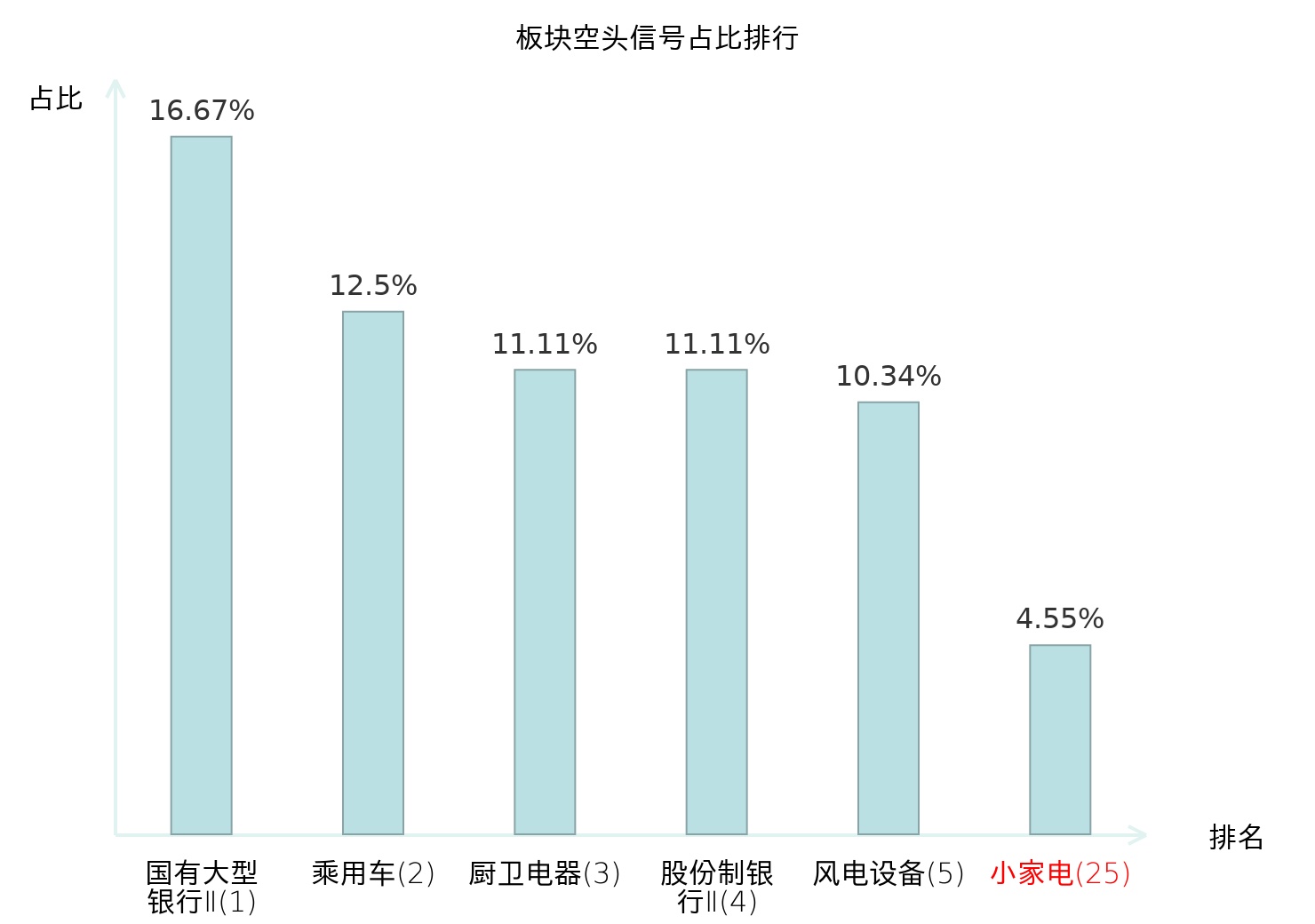全市场所有行业板块中主力空头信号占比排名中,国有大型银行Ⅱ板块位居第一。包装印刷板块名次提升最快,较昨日上升117位。