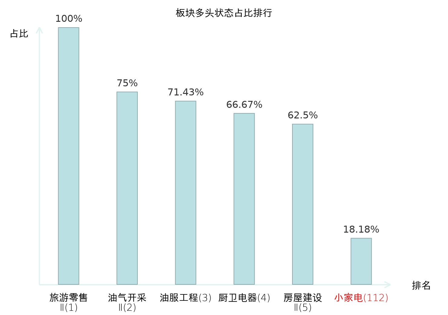 全市场所有行业板块中主力多头状态占比排名中,旅游零售Ⅱ板块位居第一。焦炭Ⅱ板块名次提升最快,较昨日上升58位。