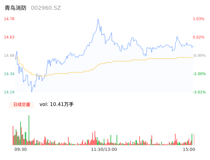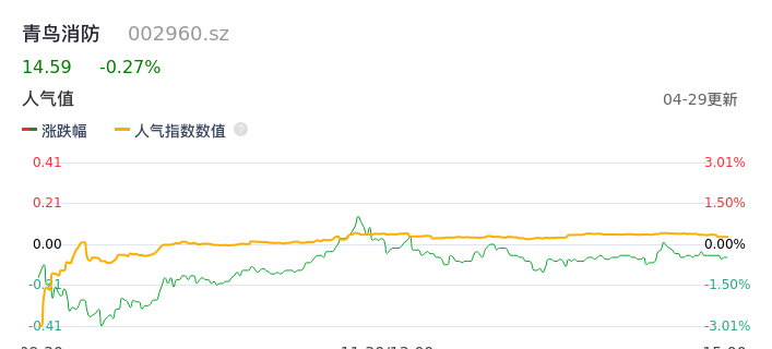 04月29日,青鸟消防收报14.59,股价涨幅-0.27%,成交金额1.51亿元,换手率1.64%。