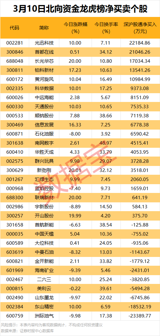 北向资金净卖出11股,洲际油气净卖出金额居首,为2.34亿元;东山精密山东墨龙美利云等净卖出金额均超5000万元。