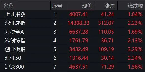 4月10日,A股三大指数集体高开。截至发稿,沪指涨逾1%重回4000点,深证成指涨逾2%,创业板指涨超3%。