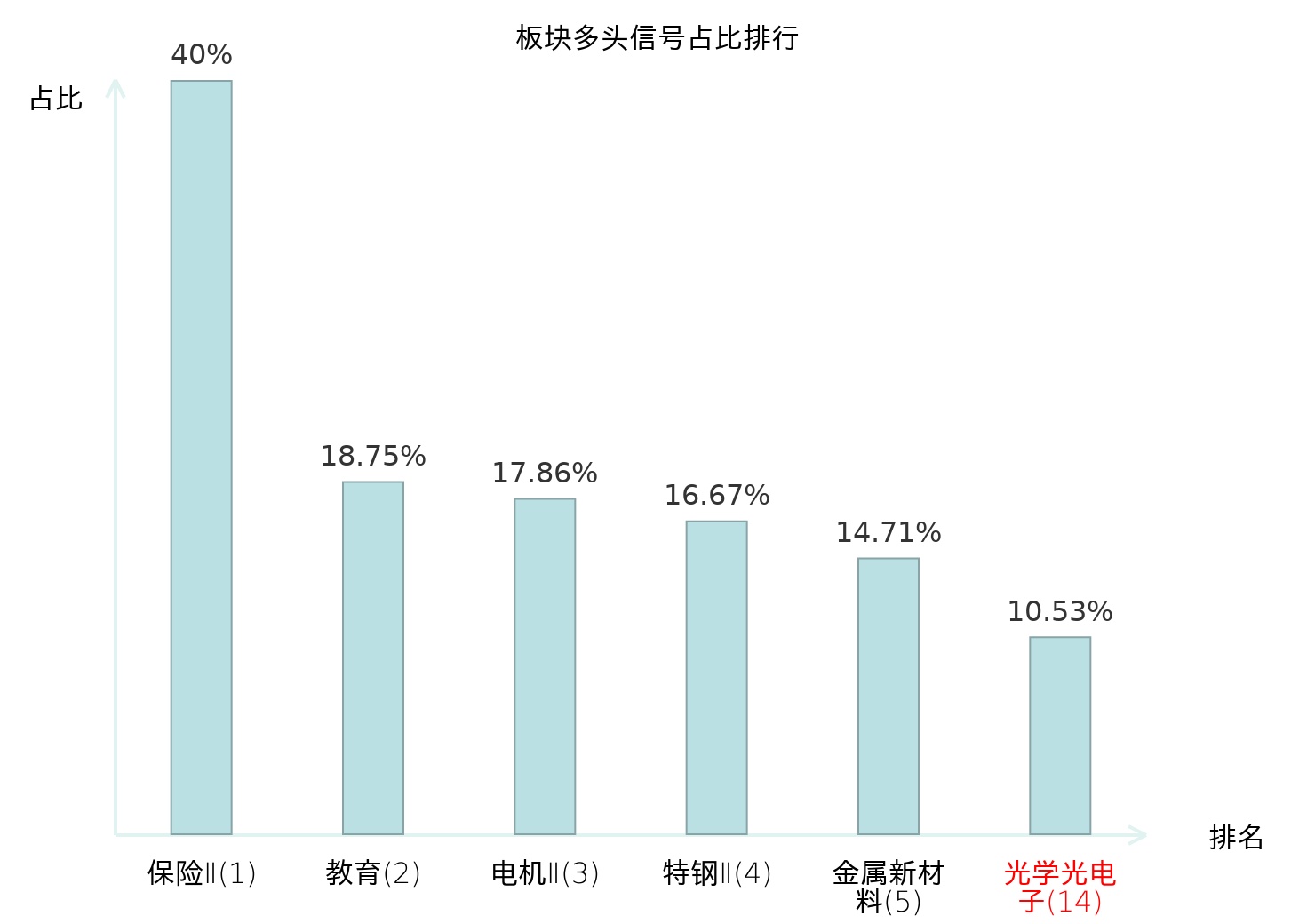 从主力宝信号数据分析,五方光电所属的光学光电子板块中共10只股票发出主力多头信号,主力多头信号占比在全行业中排名第14位,较昨日上升15位;较高的排名表明主力对于该板块整体看多意愿较强,此次排名显著上升反映出主力对该板块态度趋于积极;全市场所有行业板块中主力多头信号占比排名中,保险Ⅱ板块位居第一;保险Ⅱ板块名次提升最快,较昨日上升124位;这些变动揭示了不同行业间主力资金动向的结构性变化,为投资者判断板块相对强度和潜在关注方向提供了客观依据。