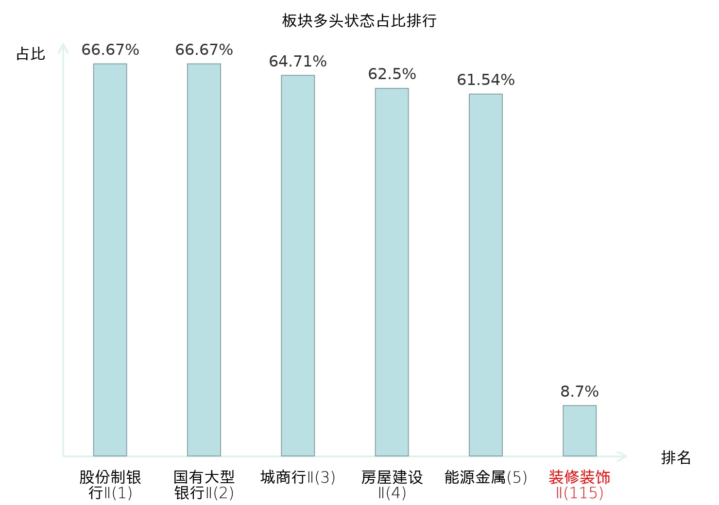 全市场所有行业板块中主力多头状态占比排名中,股份制银行Ⅱ板块位居第一。其他家电Ⅱ板块名次提升最快,较昨日上升102位。